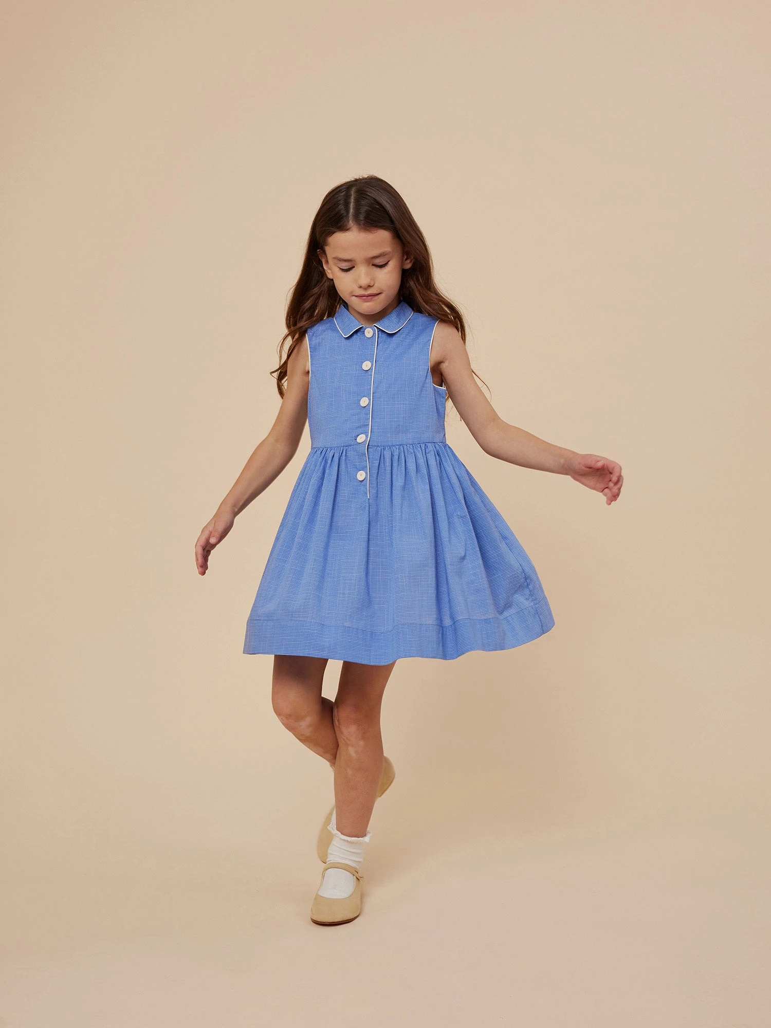 Pleine de jolis dĂ©tails, cette robe-chemisier Anne pour fille s’ouvre sur le devant par 5 gros boutons recouverts. La coupe sans manches est rehaussĂ©e d’un col chemise et d’emmanchures Ă passepoil contrastant.