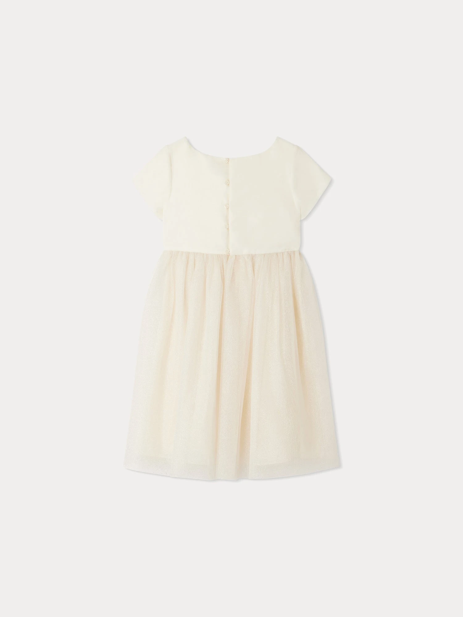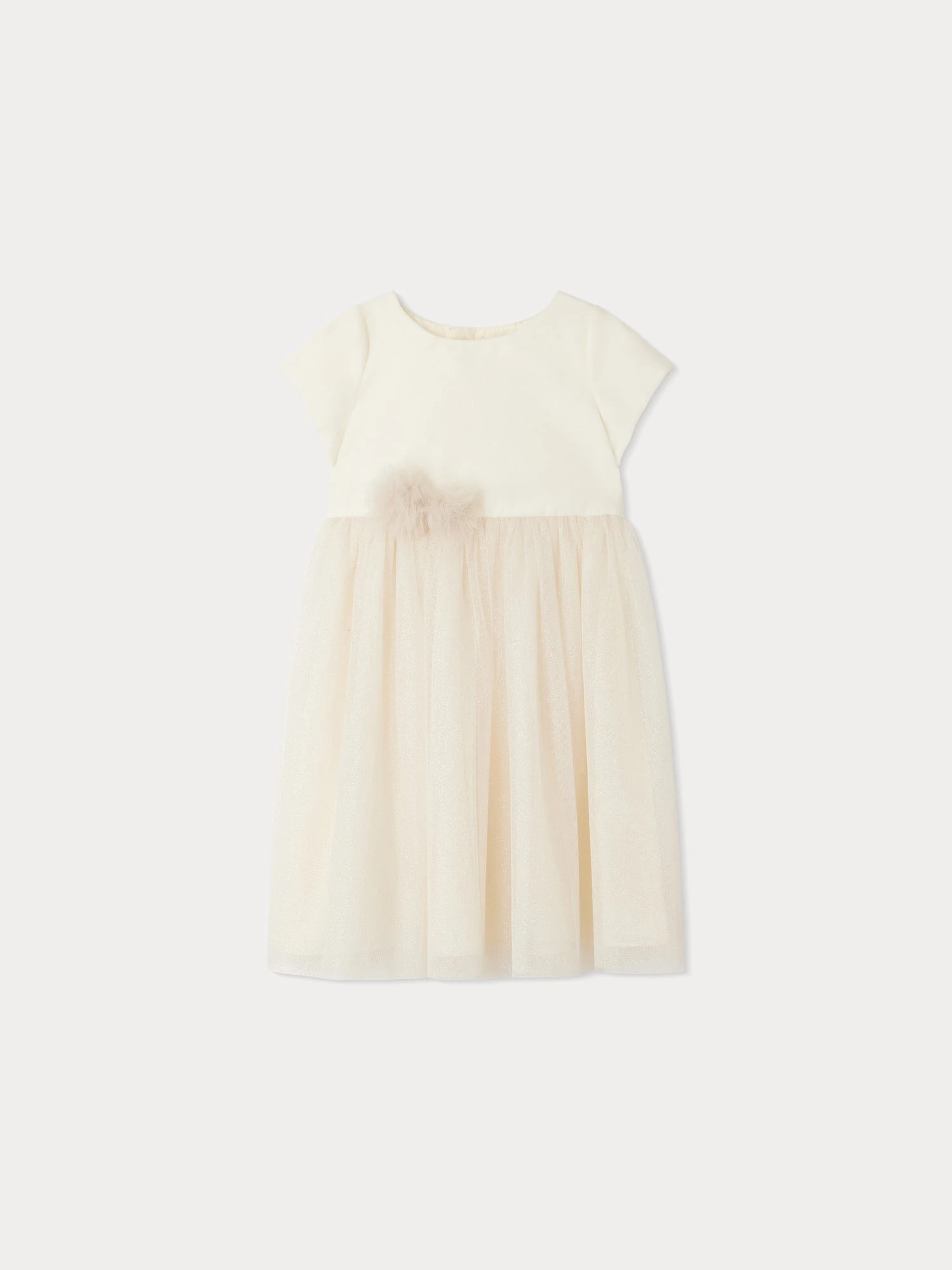 Cette robe Bright pour fille rivalise d’élégance pour les fêtes avec sa jupe en tulle pailleté et ses pompons tout doux sur la taille. Elle se ferme à l’aide de boutons discrets au dos.