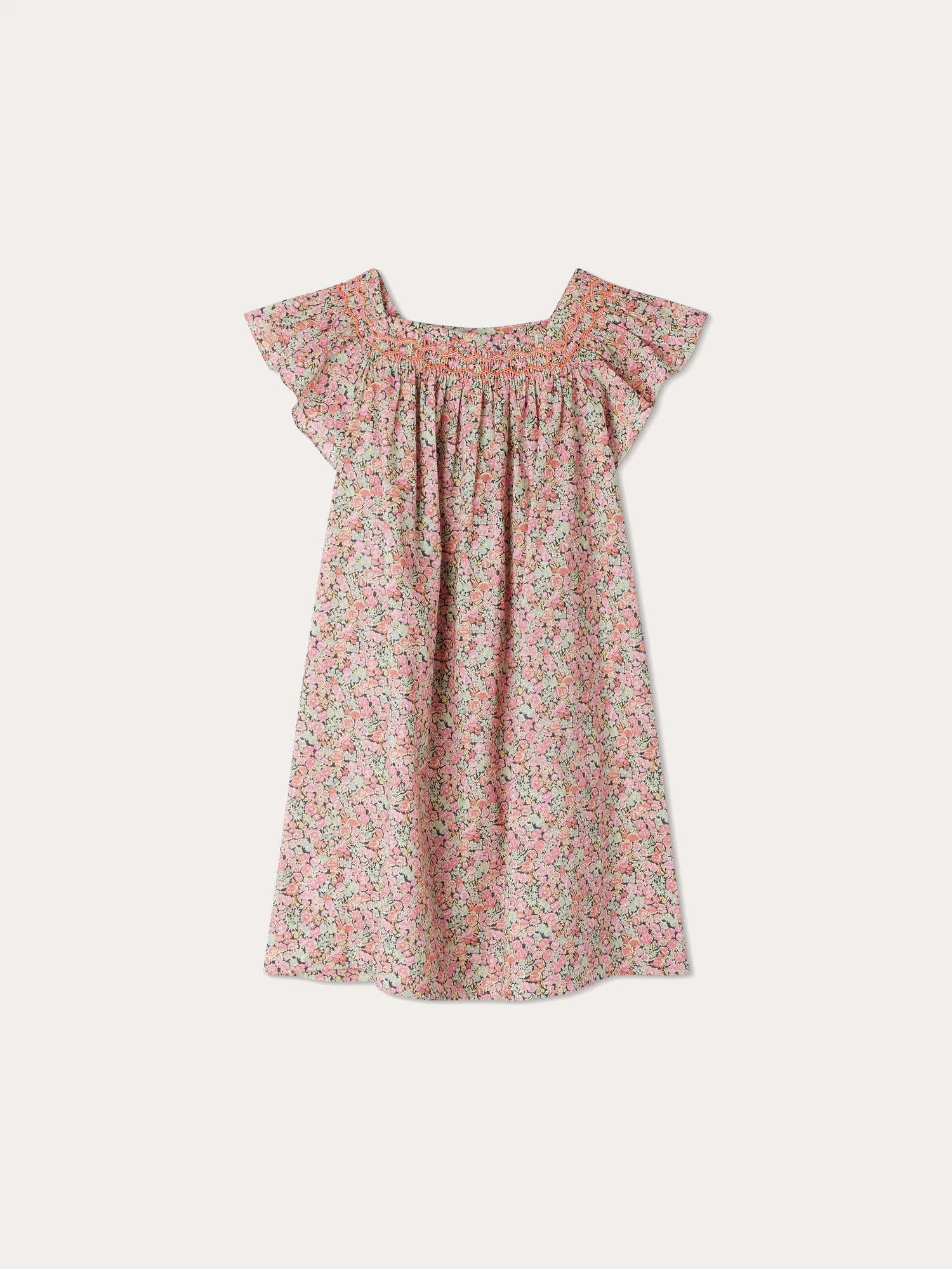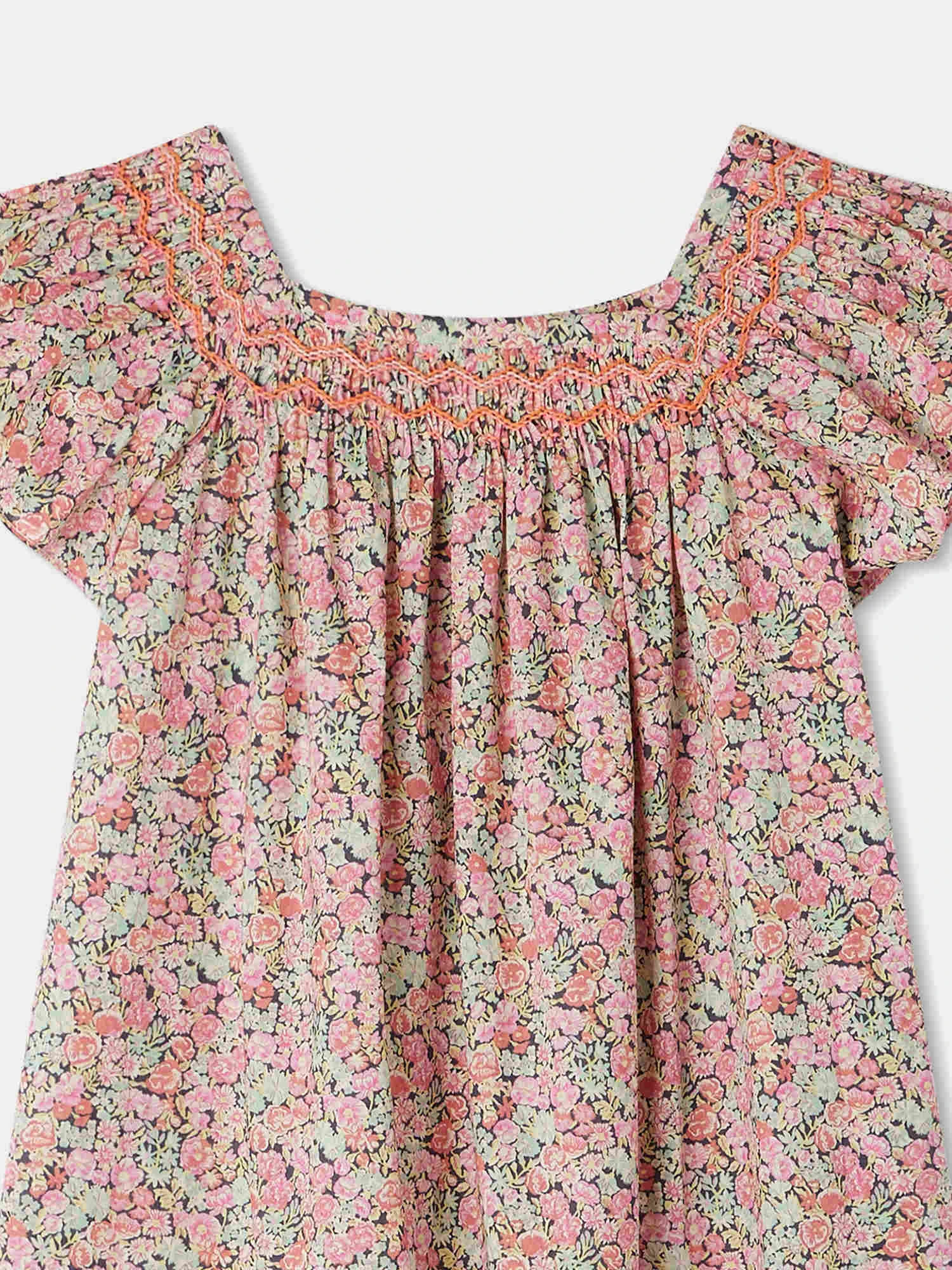 Cette robe pour fille Coryse est ravissante avec ses smocks brodĂ©s Ă la main et son tissu Liberty au motif frais et colorĂ©. Elle est confectionnĂ©e en coton issu de l’agriculture biologique.