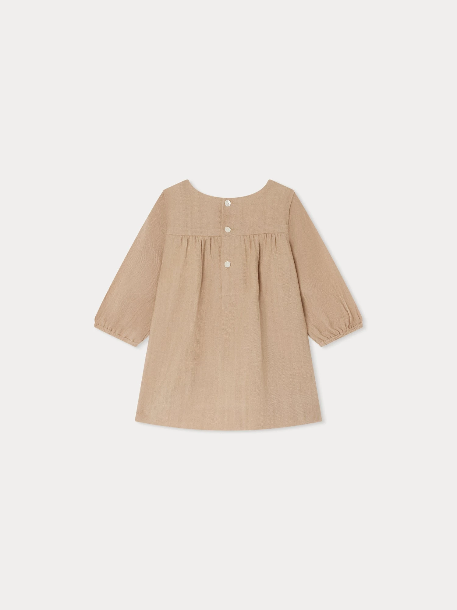 La robe Dipiki illustre le savoir-faire artisanal de la Maison avec ses fleurs colorées brodées tout autour de l’encolure. Des fronces sous l’empiècement du haut donnent de la fluidité à la coupe évasée.