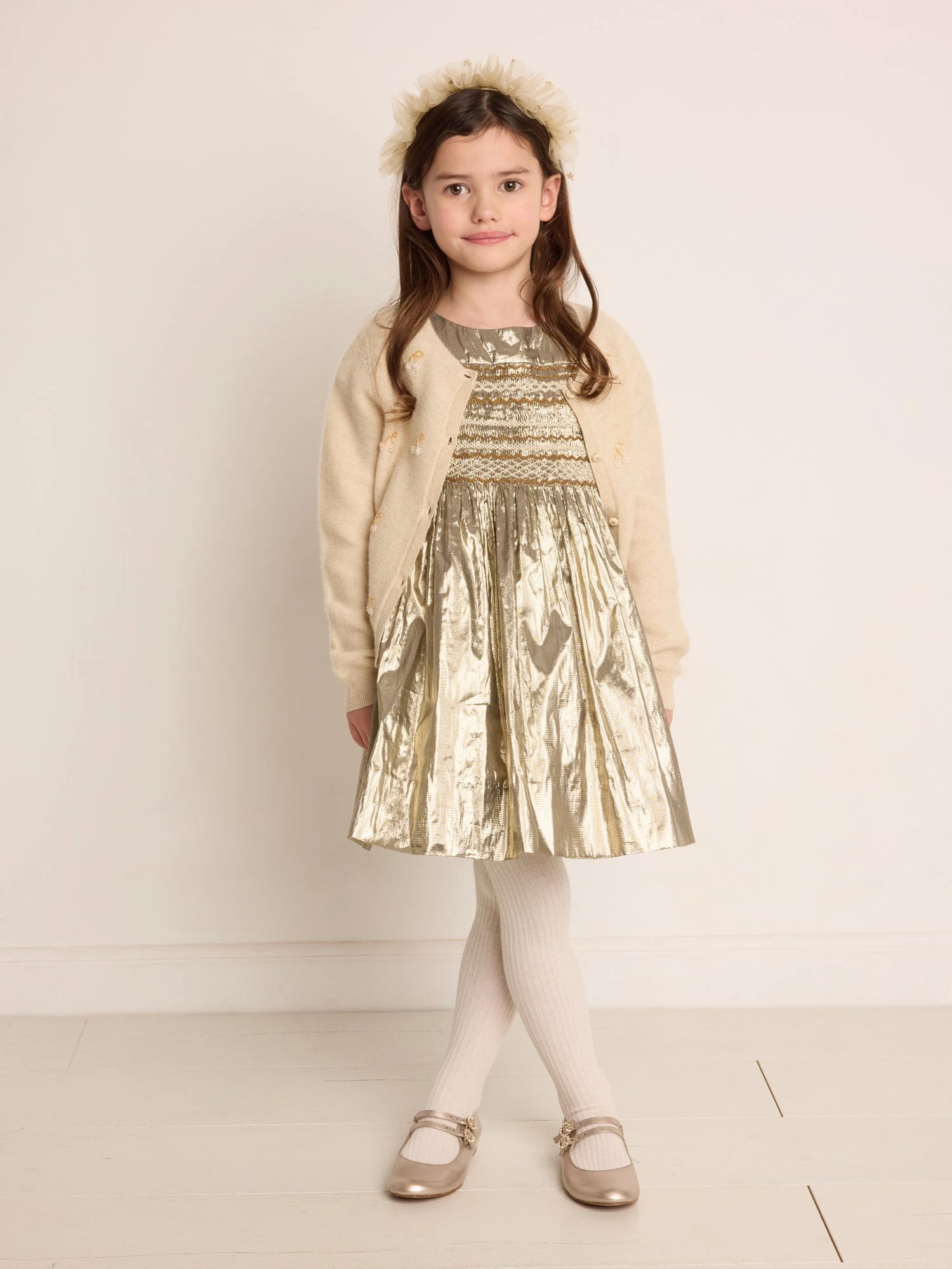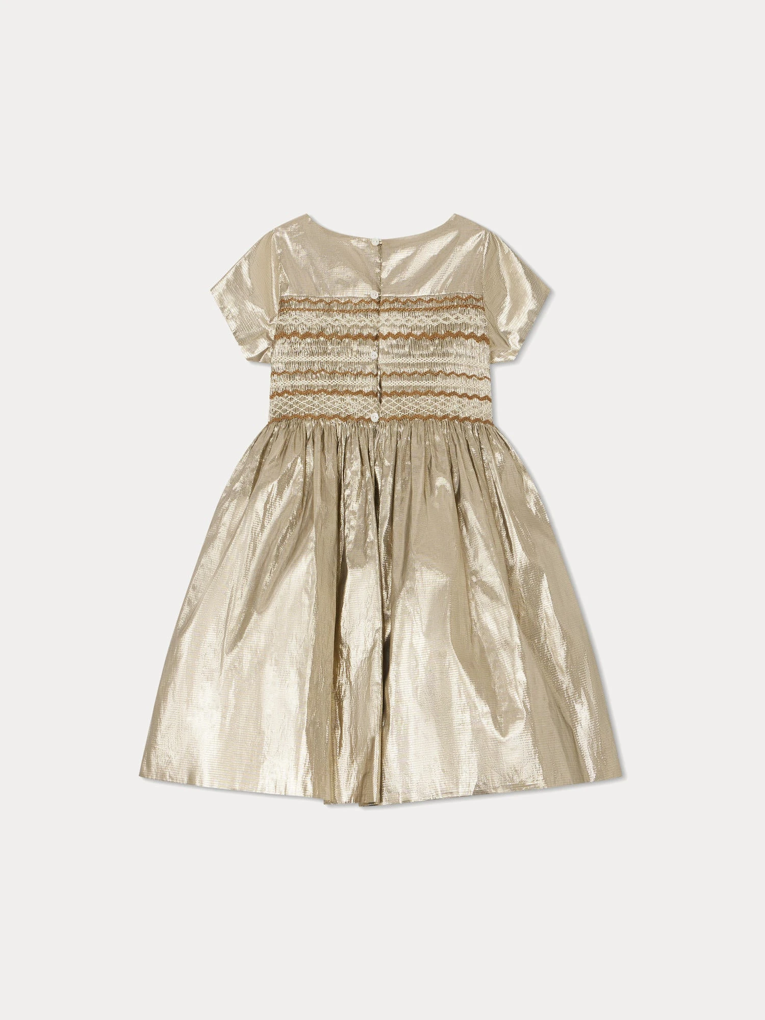 Cette robe pour fille Duchesse mise sur l’élégance avec ses smocks brodés à la main et son jeu de fronces à la taille. Pour une touche de raffinement supplémentaire, elle contient de la soie.