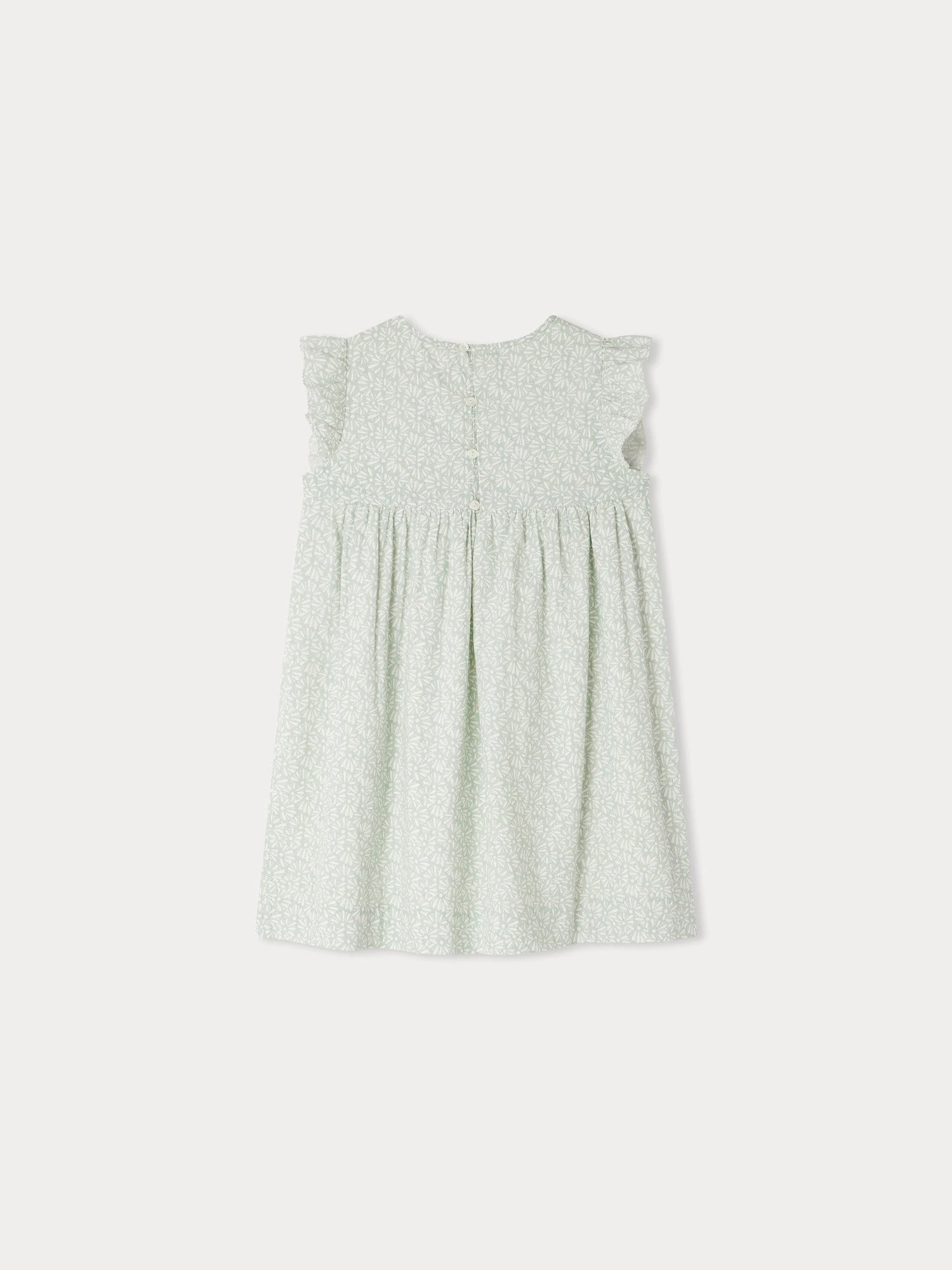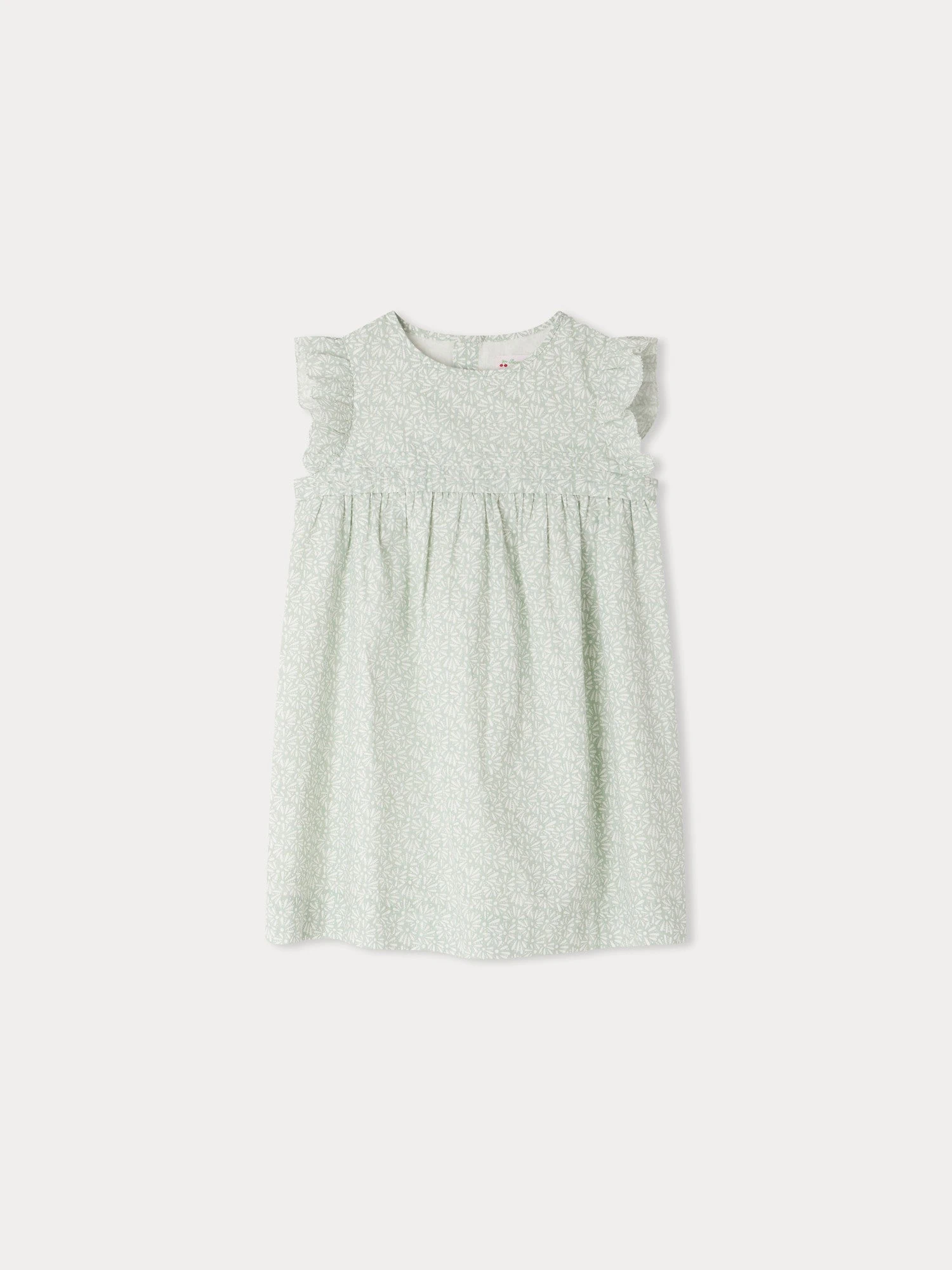 La robe Fillette apporte une douce touche végétale à la garde-robe des filles. Ses mancherons se composent d’un ravissant volant vaporeux et des fronces marquent la taille.