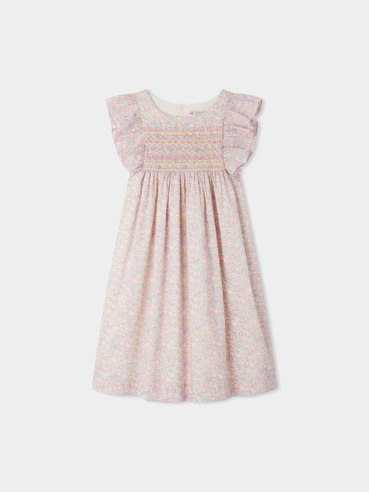 Cette robe pour fille Fiorella rivalise d’élégance avec ses smocks brodés à la main sur le buste. Elle est confectionnée en coton biologique, dans un tissu Liberty à l’accent bohème.
