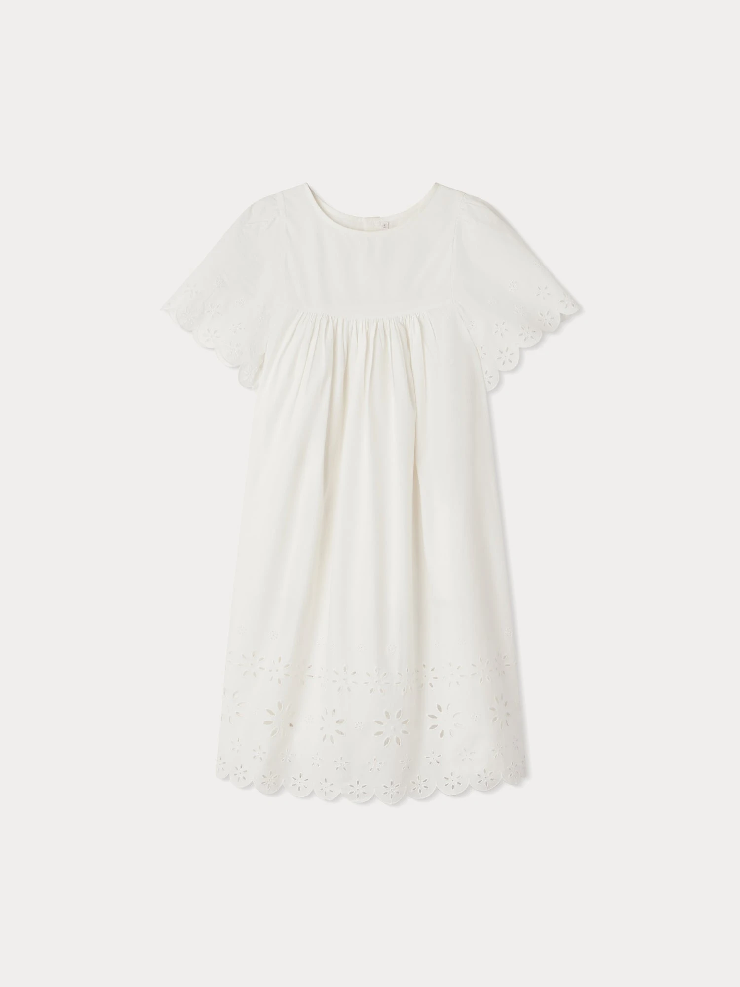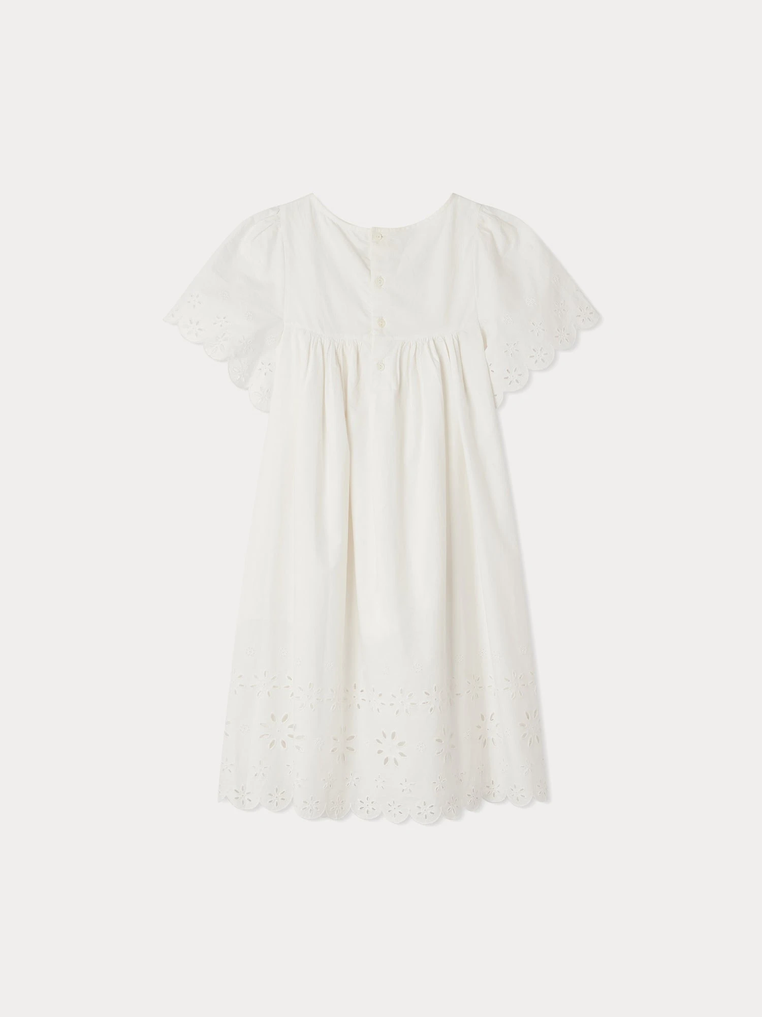 Cette robe pour fille Francesca mise sur l’élégance avec ses broderies anglaises à la base et au bord des manches. Elle comporte une doublure en voile de coton.