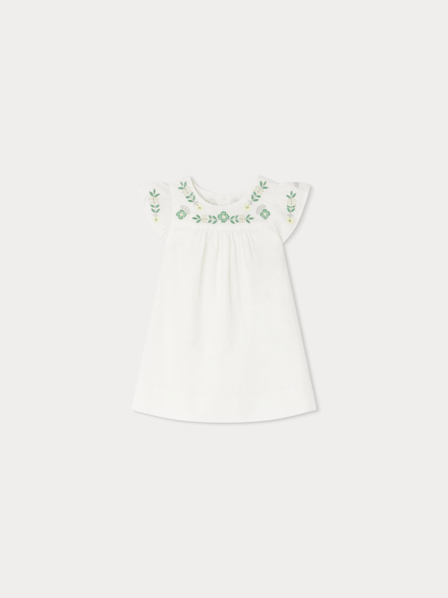 Confectionnée en coton biologique et rehaussée de broderies florales, cette robe pour bébé Laurie est idéale pour composer une tenue bohème. Elle comporte une doublure en voile de coton.