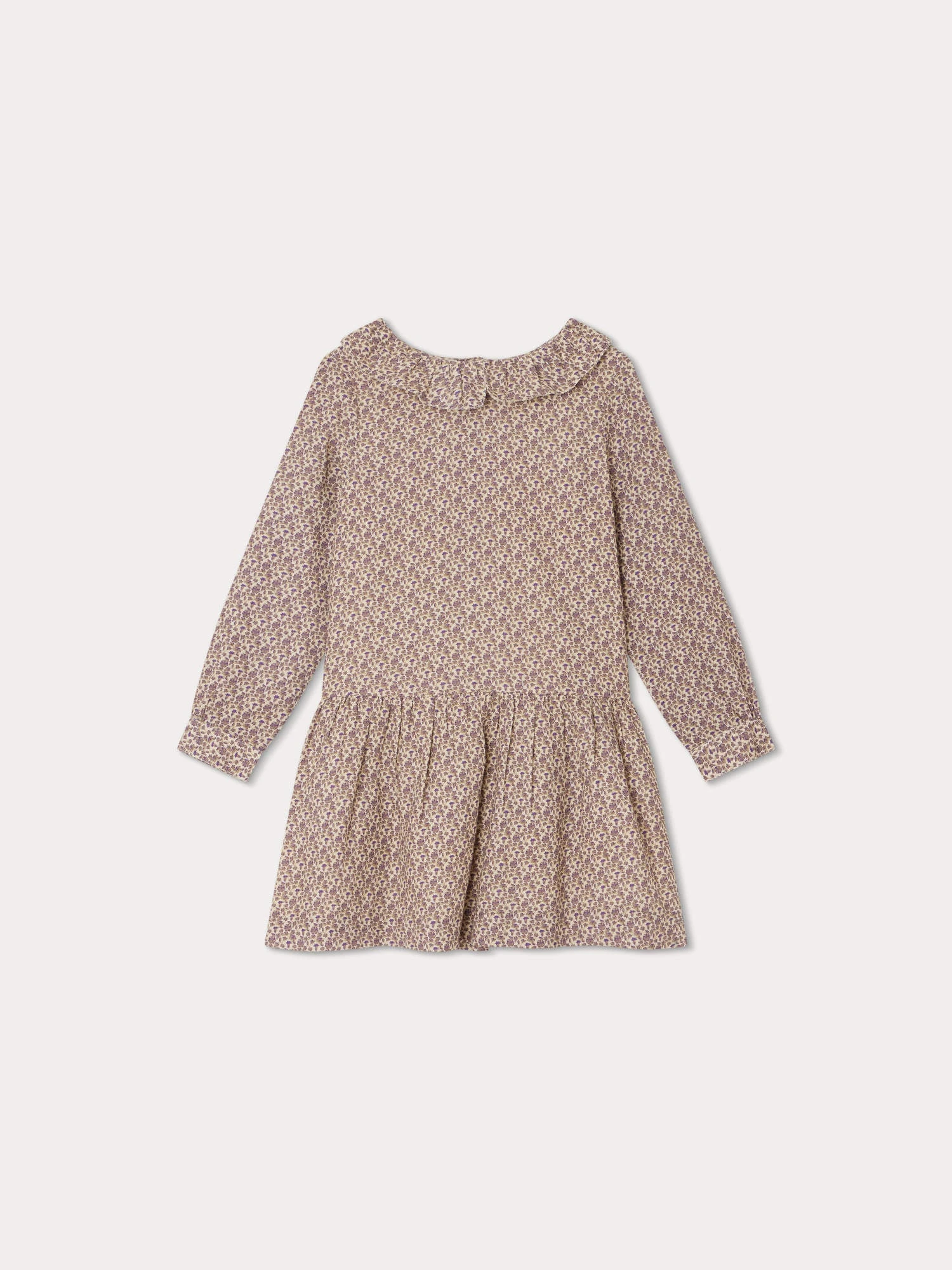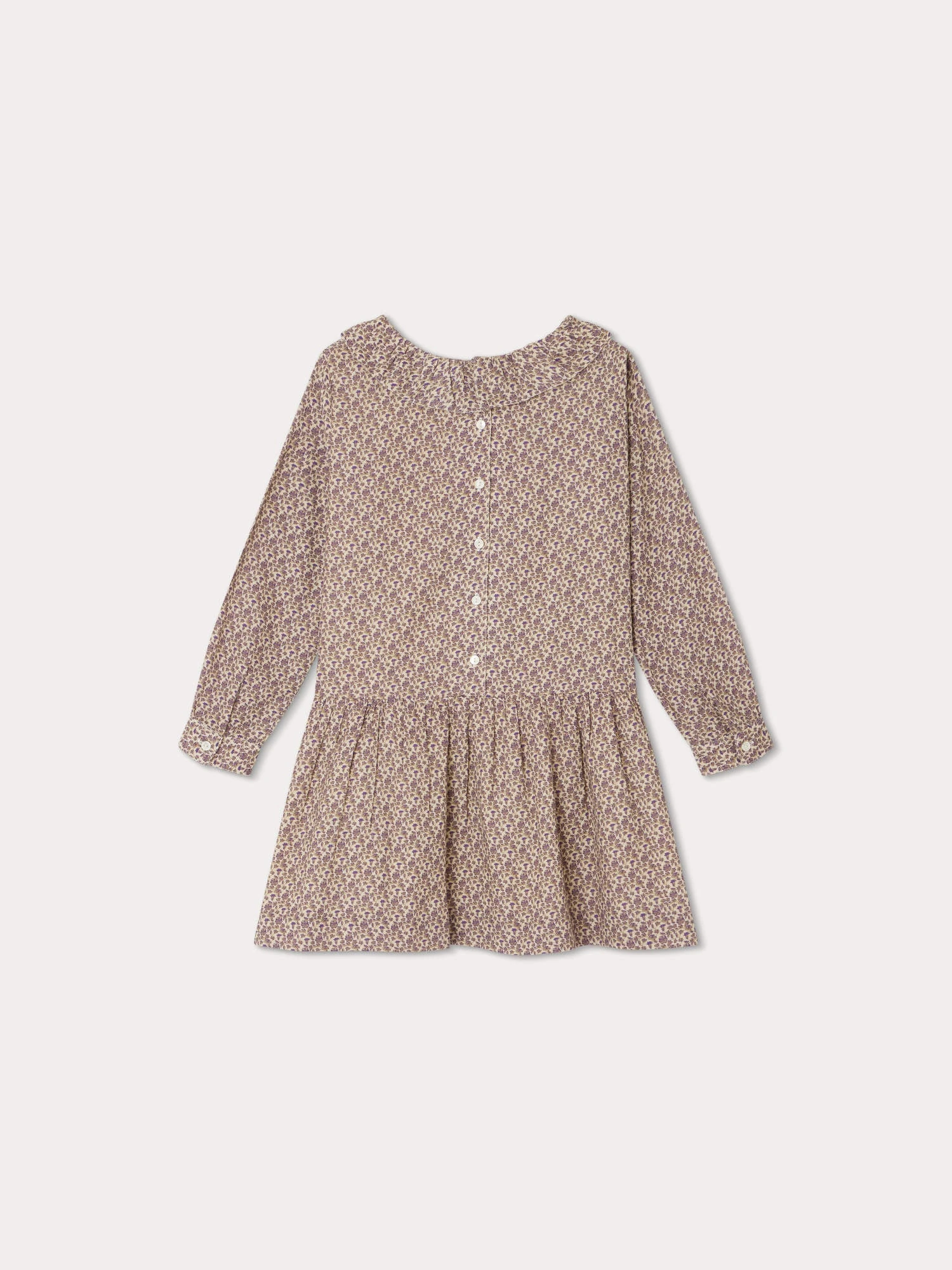 Cette robe pour fille Mariela se dĂ©marque par sa taille basse et son large volant au col. Elle se pare d’un motif floral frais et ravissant.