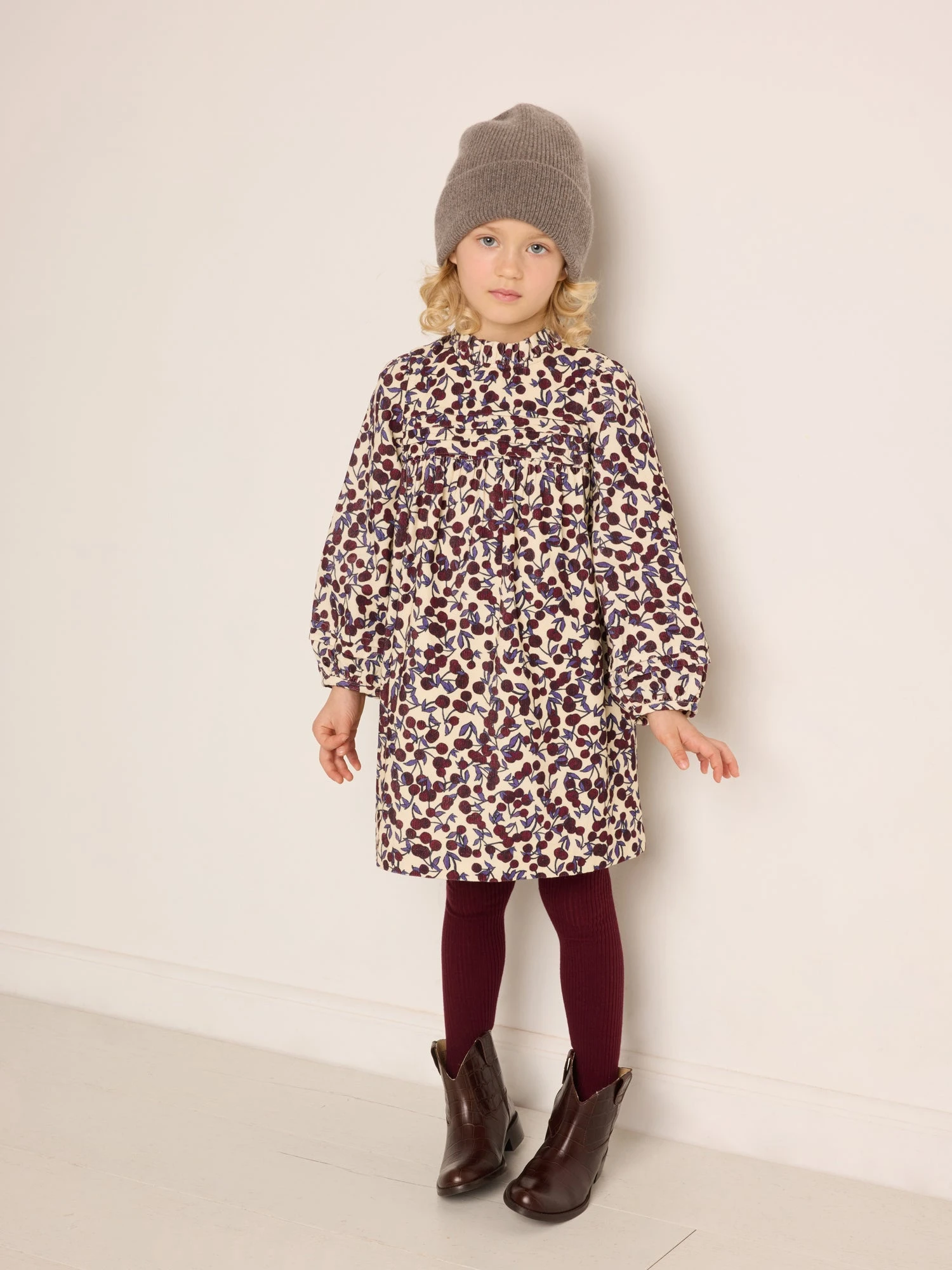 Caractérisée par son volume ample et son imprimé cerises emblématique, cette robe à manches longues Topaz pour fille est un incontournable de la saison. Elle s’orne d’une base froncée et d’un col plissé.