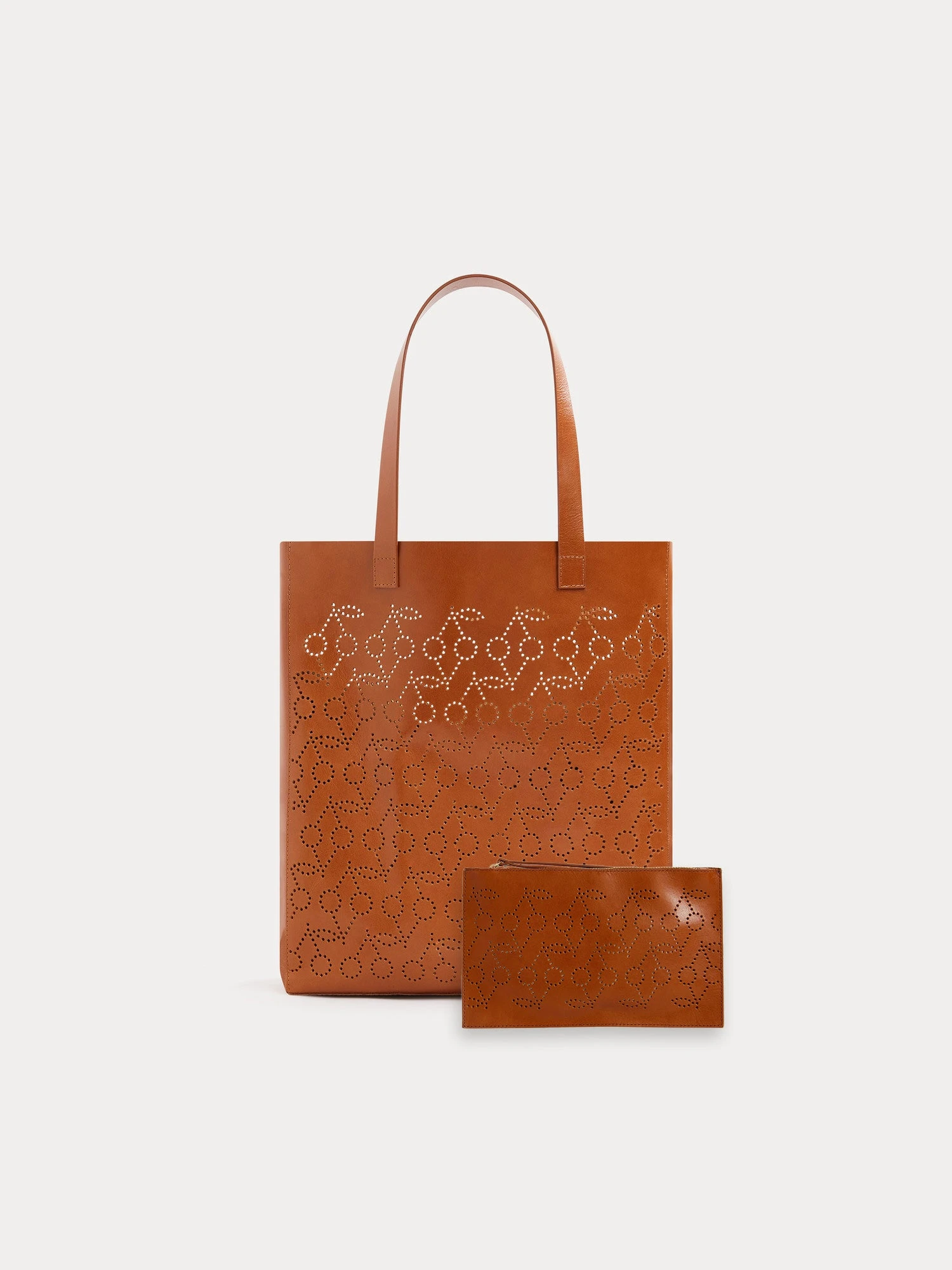 Le sac Brune pour fille s’inspire du vestiaire des mamans avec sa forme cabas et sa conception tout en cuir. Le devant et l’arrière se distinguent par leurs motifs cerises ajourés. Il s’accompagne d’une jolie pochette à glisser dans le sac.