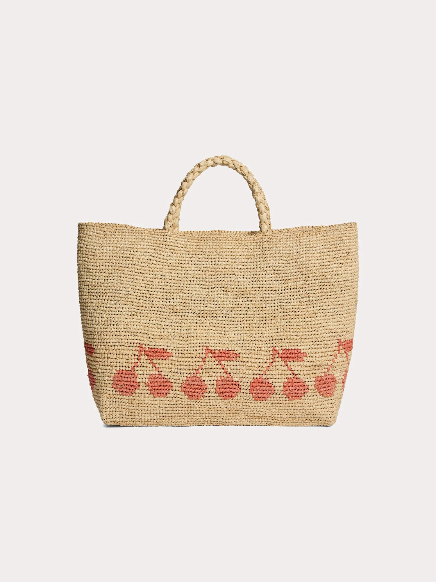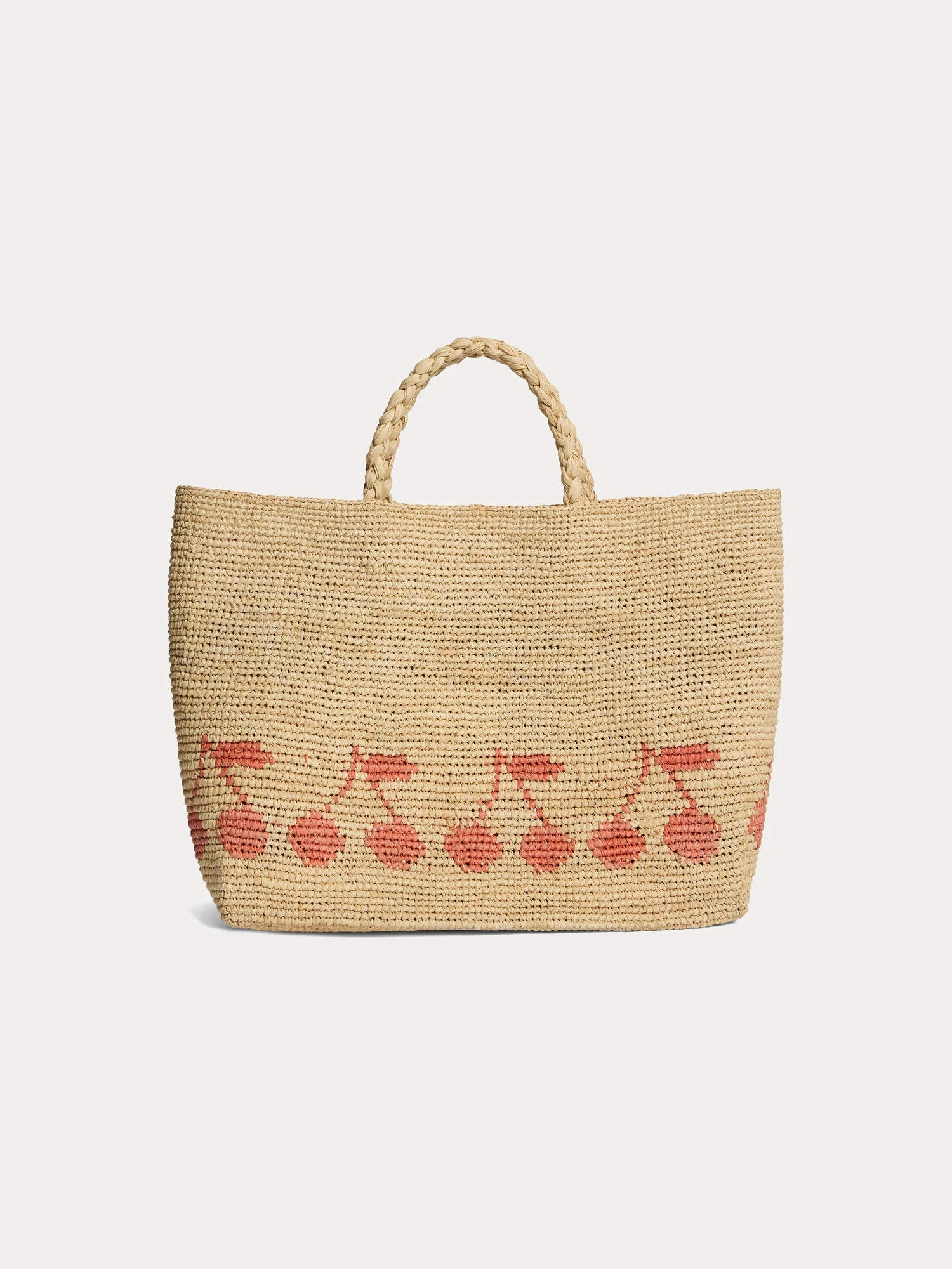 En raphia naturel, ce sac cabas Fama pour fille s’orne d’une frise de cerises Bonpoint à l’avant. Il se porte à la main grâce à ses deux anses tressées.