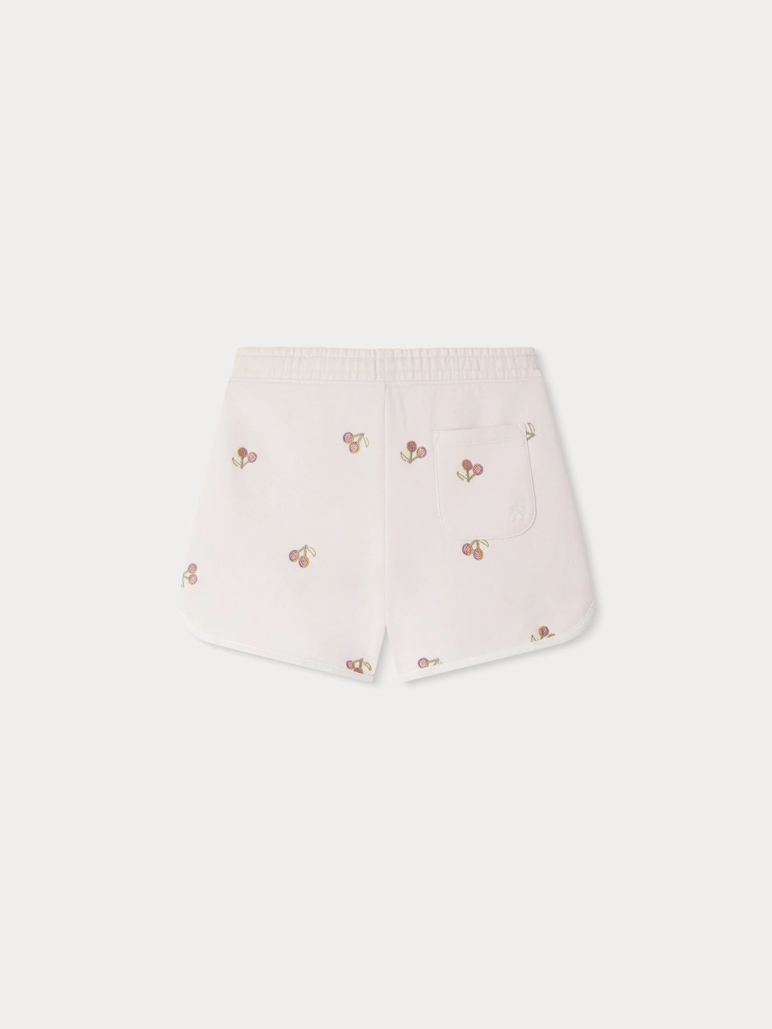 Confectionné en molleton de coton biologique, ce short pour fille Caroline est très agréable à porter. Il se démarque par ses broderies cerises en fils métallisés.