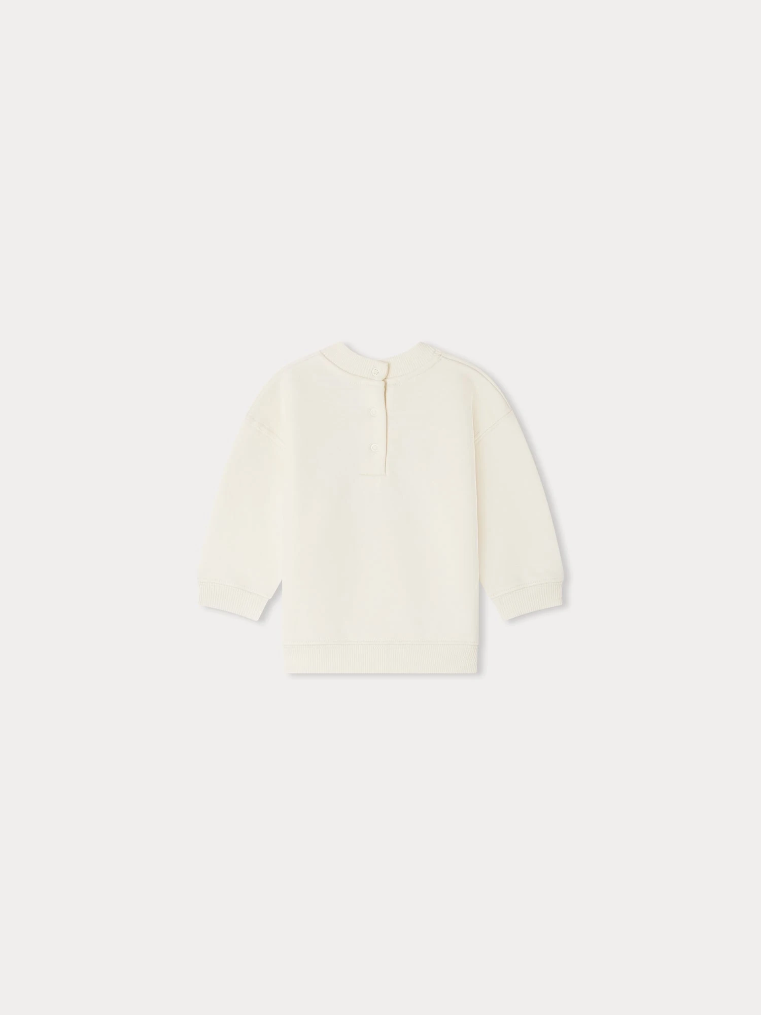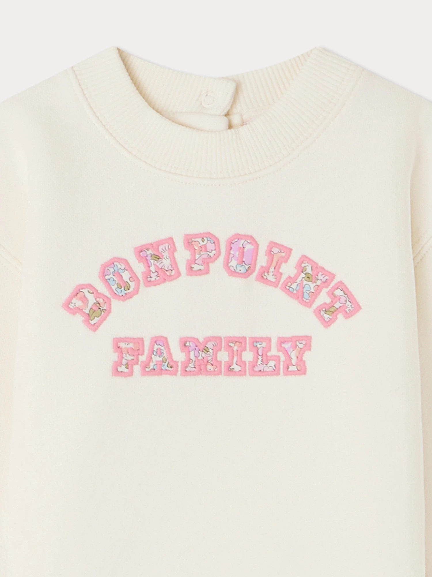Ce sweat pour bébé Dahlia se démarque avec son imprimé « Bonpoint Family » placé à l’avant. Confectionné en molleton de coton biologique, il comporte des boutons au dos pour un enfilage facile.