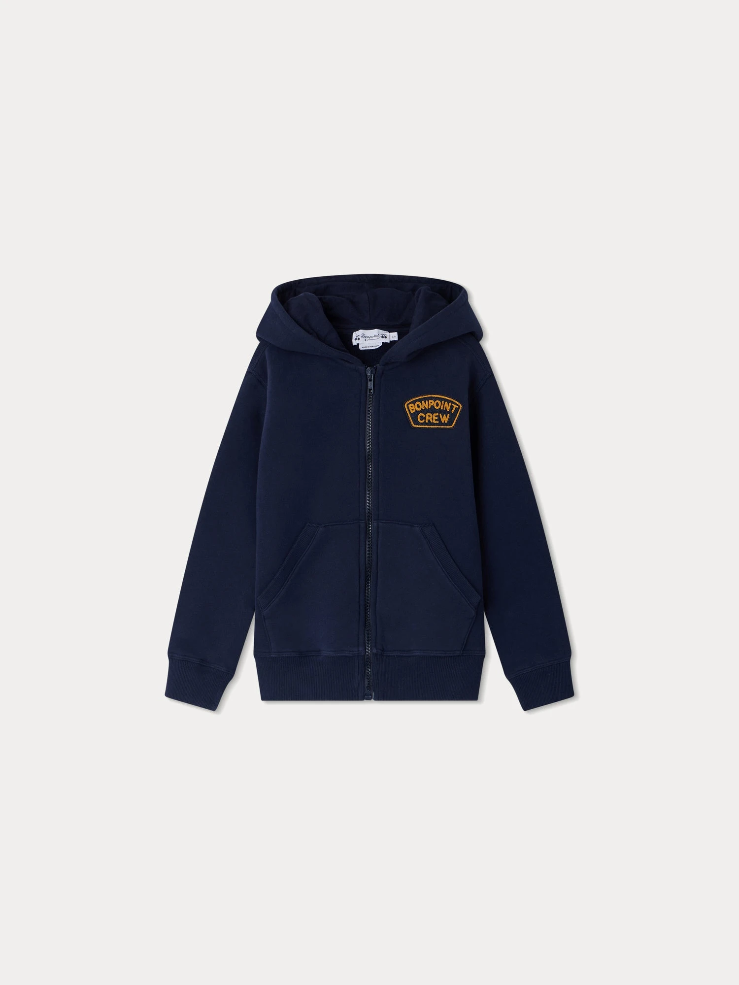 Confectionné en coton biologique, ce sweatshirt zippé pour garçon Dagan est rehaussé d’une broderie Bonpoint façon badge sur la poitrine. Il se termine par des bords-côtes élastiqués.