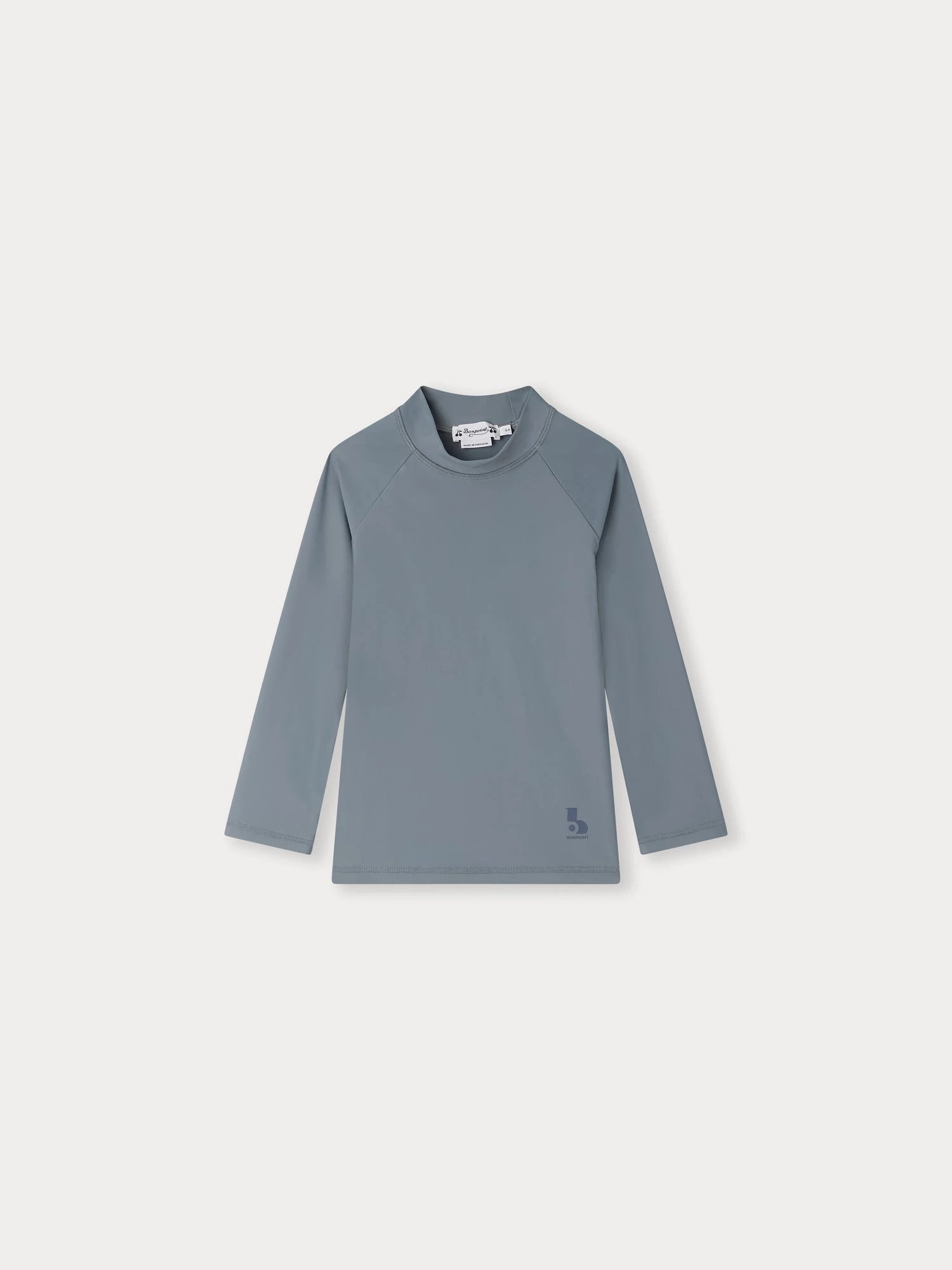 Le t-shirt anti-UV Caius pour garçon uni s’orne d’un logo Bonpoint ton sur ton sérigraphié à l’avant. Cet incontournable de la saison est doté d’un petit col montant. Il s’enfile facilement grâce à ses emmanchures raglan.