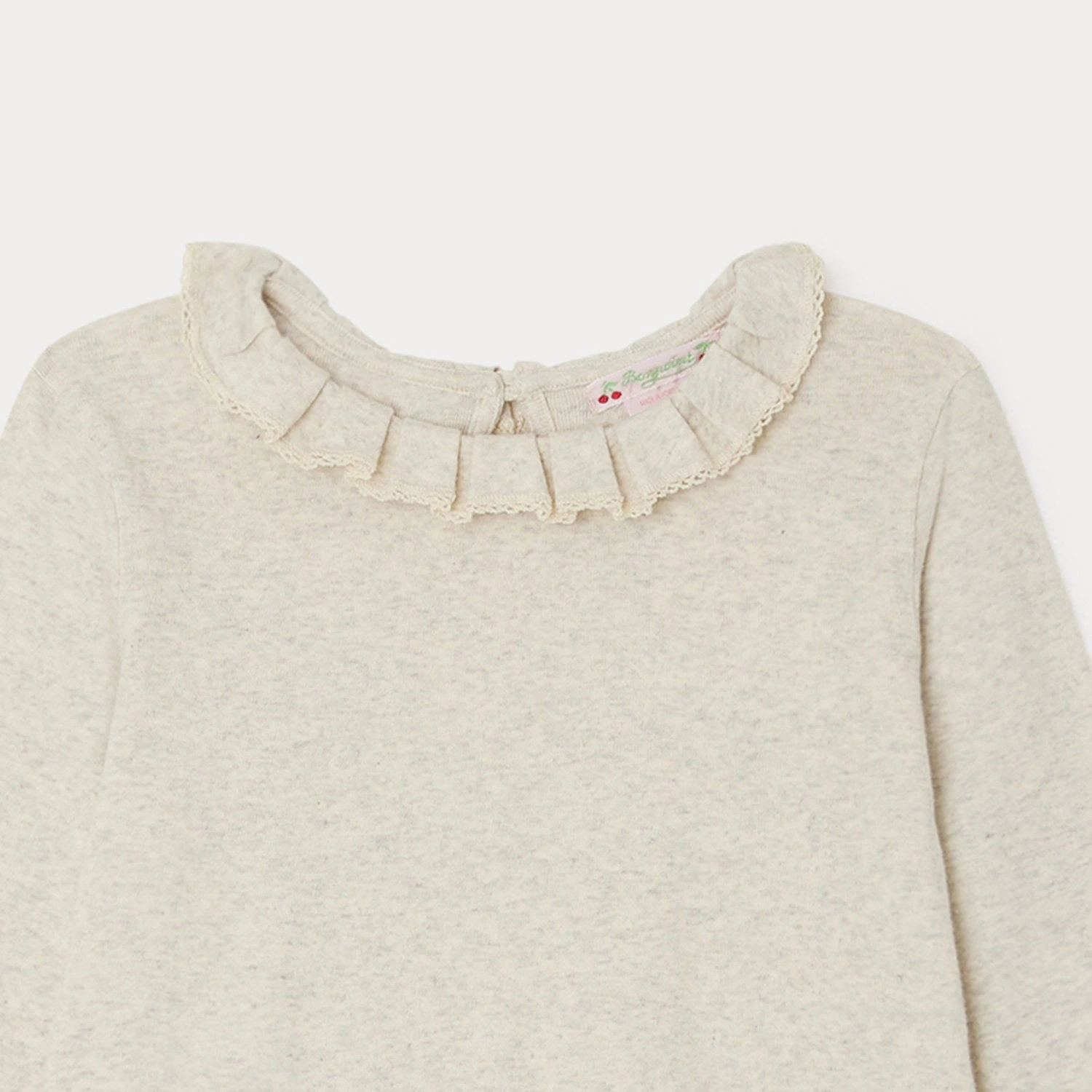 Le t-shirt Bess pour fille se démarque par sa collerette à plis creux, finie par une adorable dentelle. Ce modèle en fine maille côtelée se dévoile dans une teinte unie.
