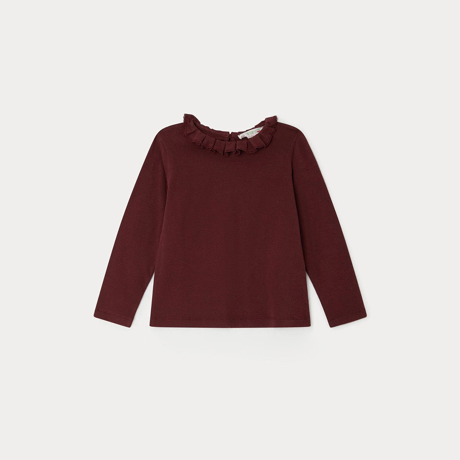 Le t-shirt Bess pour fille se démarque par sa collerette à plis creux, finie par une adorable dentelle. Ce modèle en fine maille côtelée se dévoile dans une teinte unie.