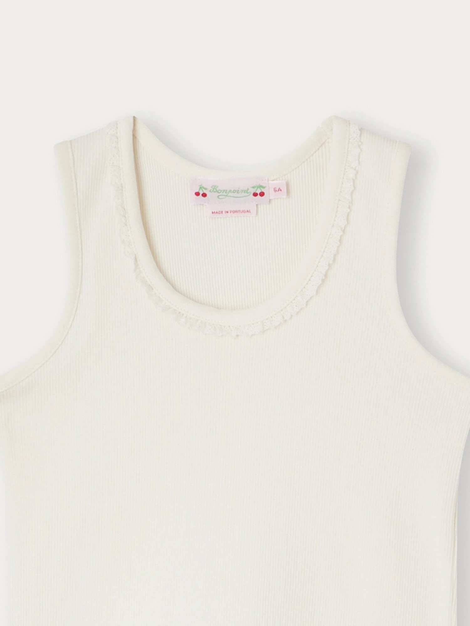 Le t-shirt pour fille Coline rivalise d’élégance avec sa délicate collerette dentelée. Uni, ce modèle sans manches est confectionné dans une fine maille de coton biologique.