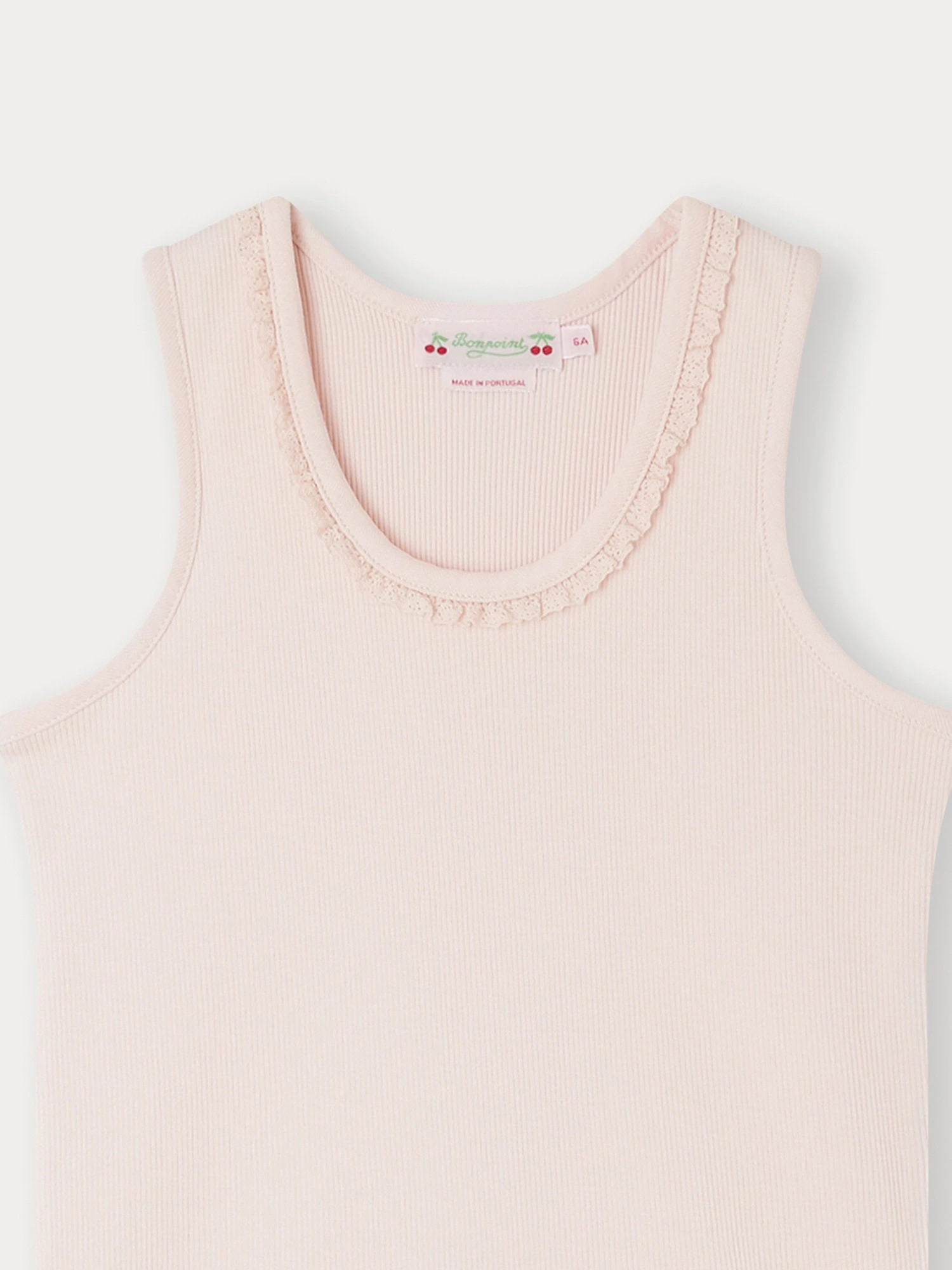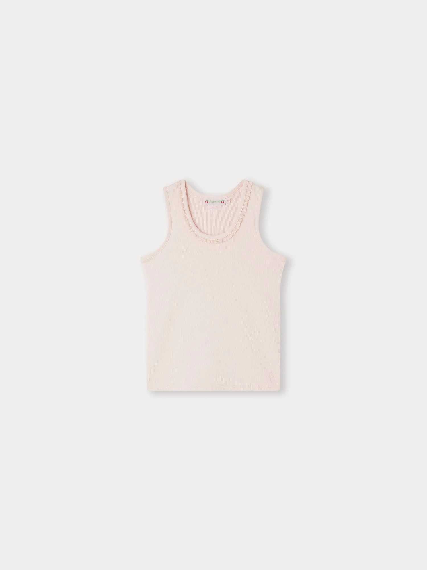 Le t-shirt pour fille Coline rivalise d’élégance avec sa délicate collerette dentelée. Uni, ce modèle sans manches est confectionné dans une fine maille de coton biologique.