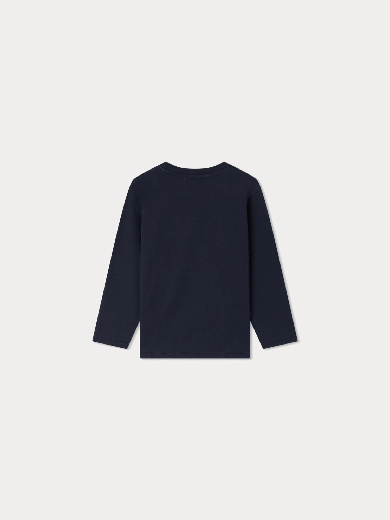 Le t-shirt Tadda pour garçon se caractérise par son grand logo contrastant devant qui revendique son inspiration du style universitaire. Ce modèle droit est réalisé en coton issu de l’agriculture biologique.