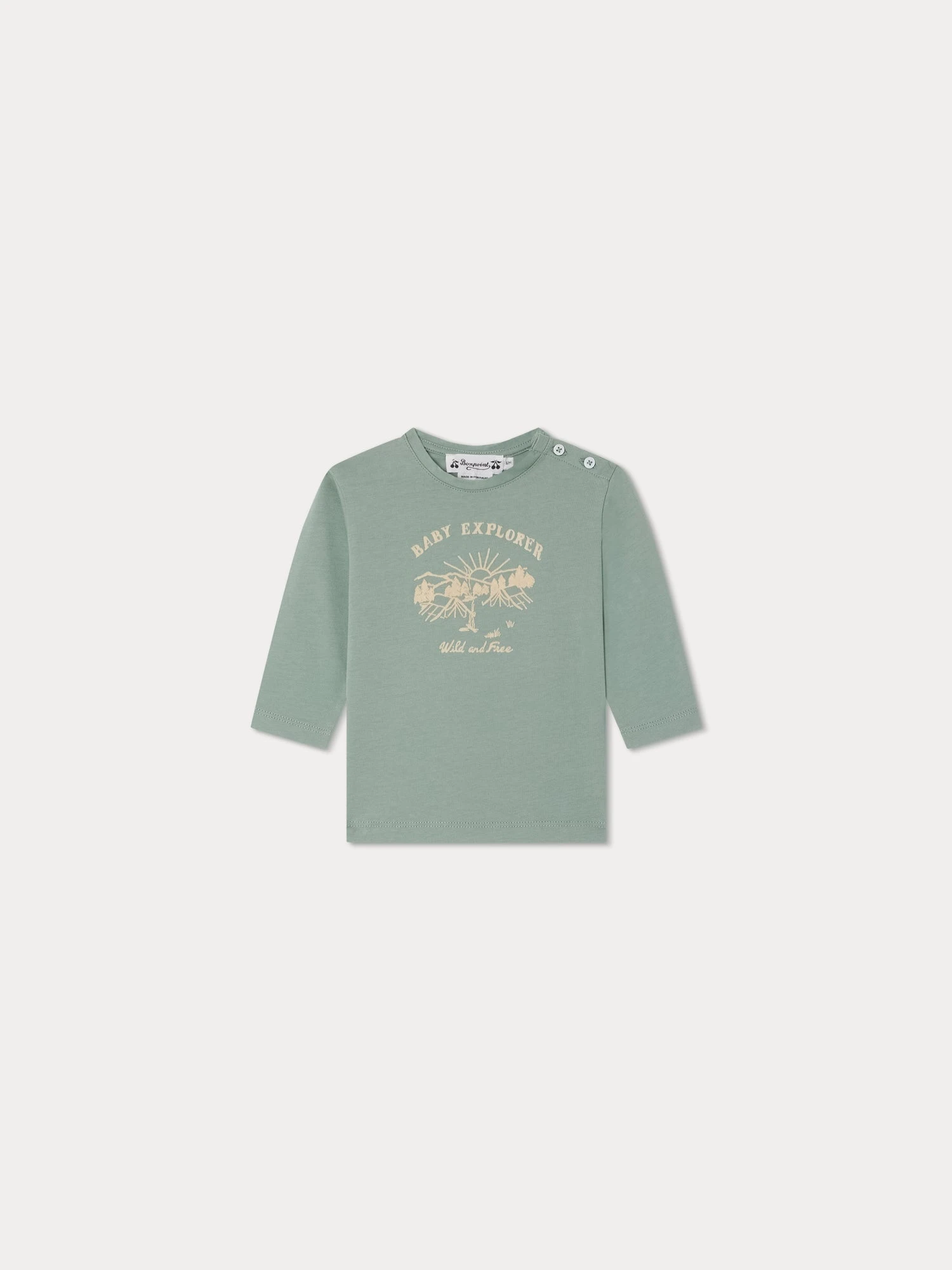 En jersey de coton biologique, le t-shirt Ă manches longues Tahsin pour bĂ©bĂ© est un incontournable Bonpoint. BoutonnĂ© sur l’Ă©paule, il s’orne d’un dessin de bivouac et du message Baby Explorer.