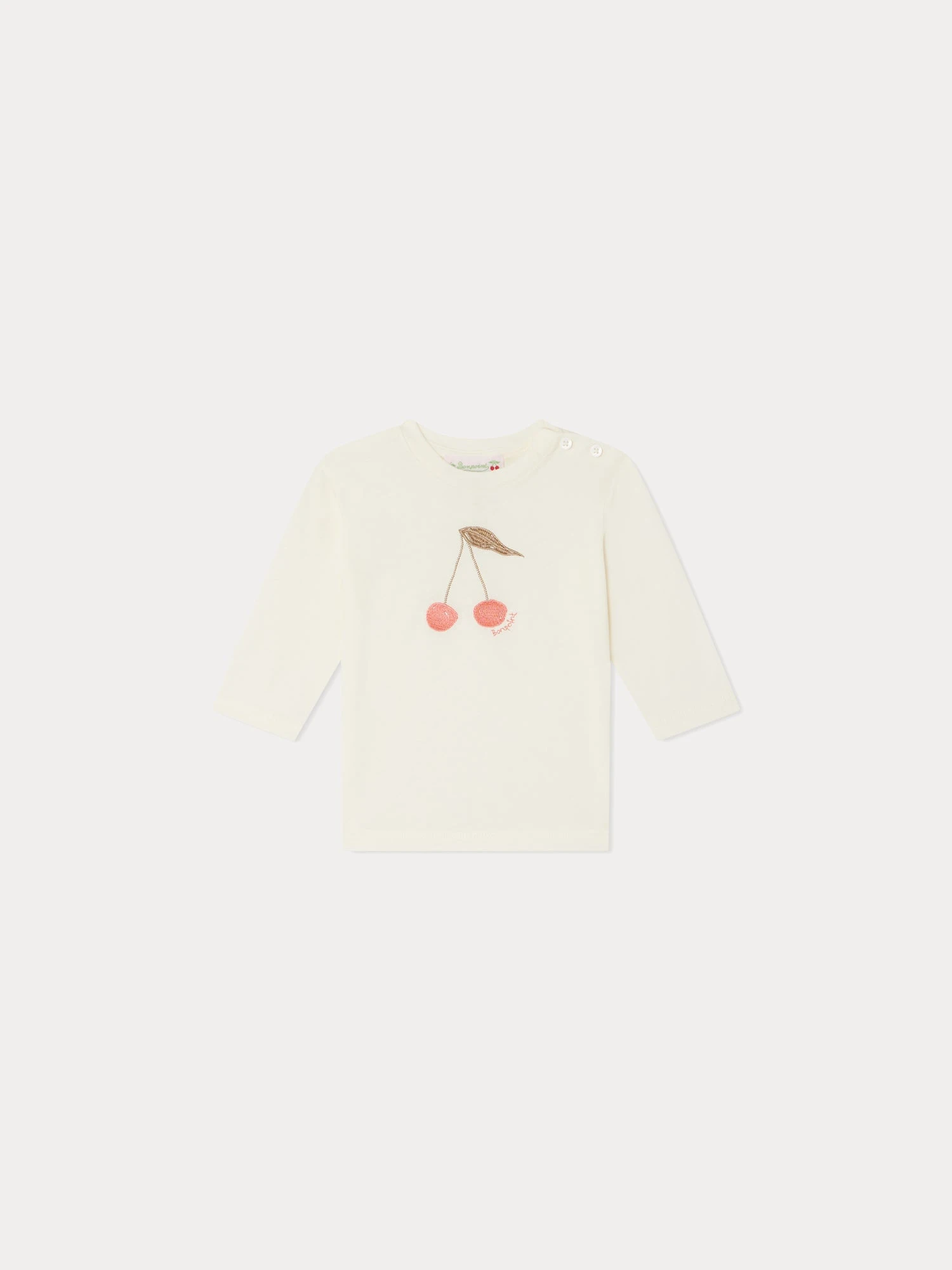 En coton biologique, le t-shirt à manches longues Tahsina pour bébé affiche une coupe droite. Une grande broderie cerise signée Bonpoint égaie l’avant de cet incontournable de la saison.