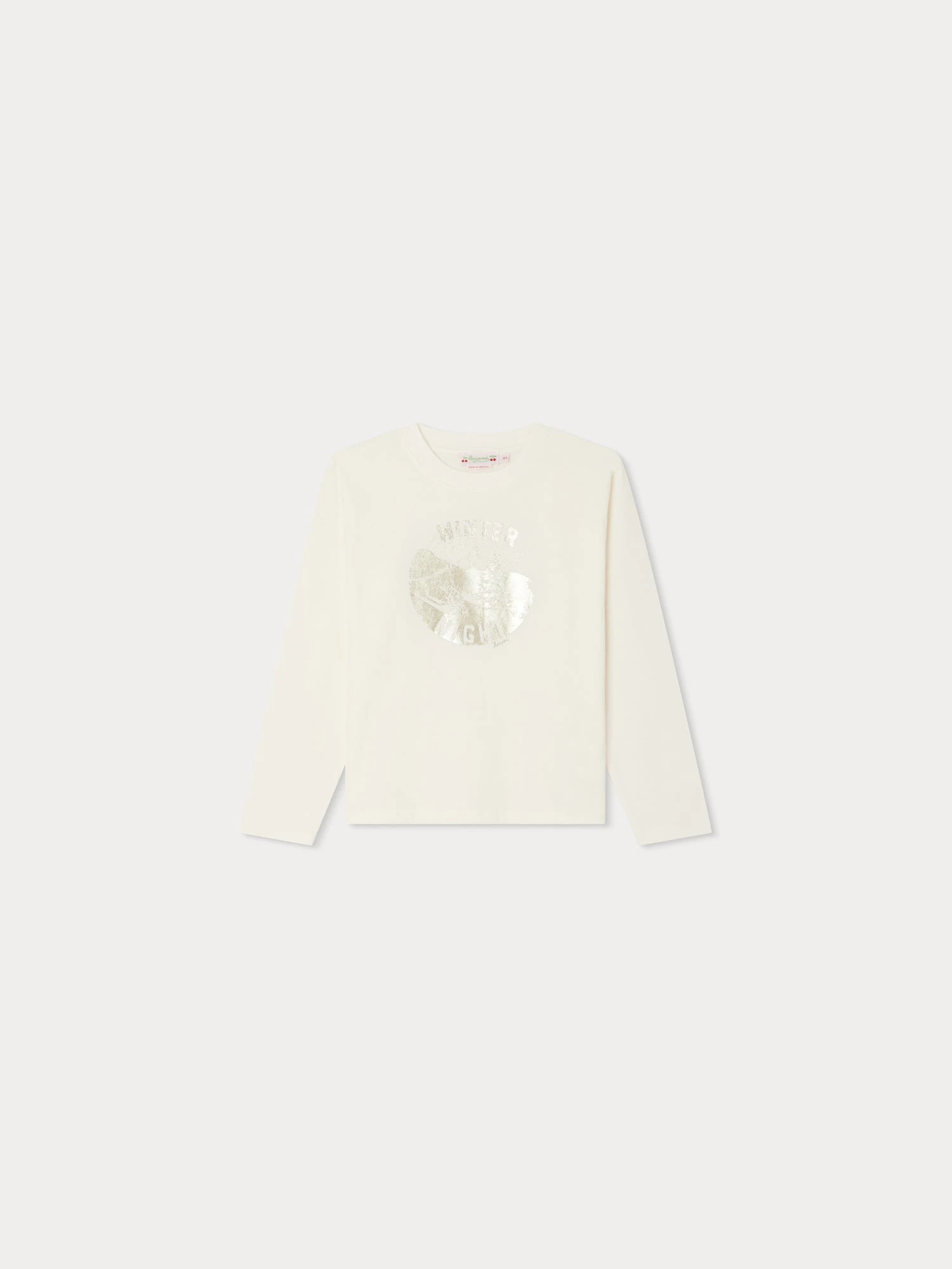 Le t-shirt Theia pour fille est réalisé dans un jersey tout doux en coton biologique. Il se démarque par son imprimé argenté en forme de cercle devant. La cerise Bonpoint s’invite dans le motif.
