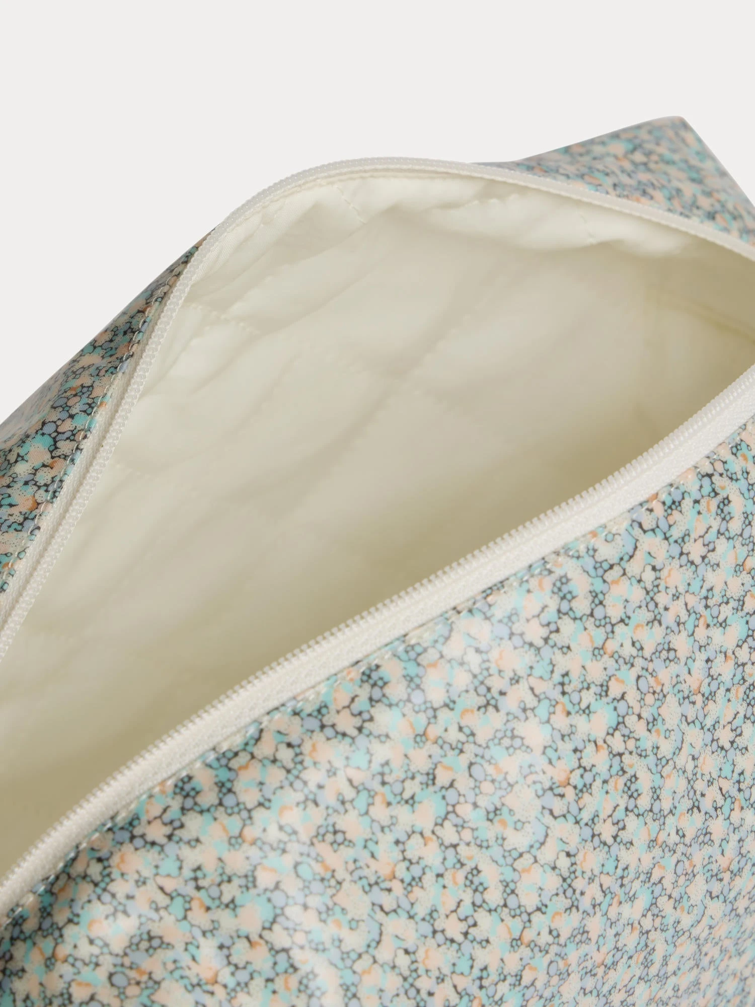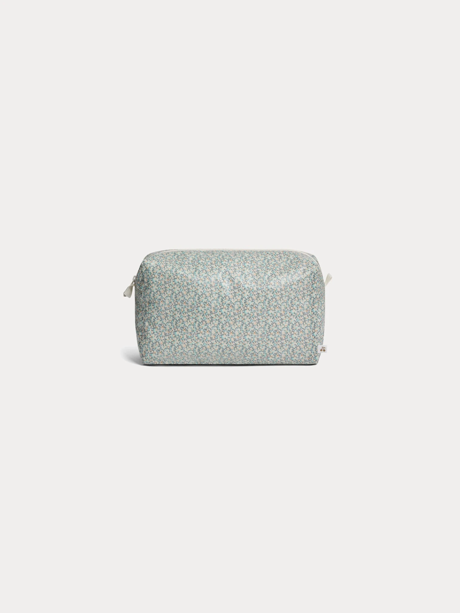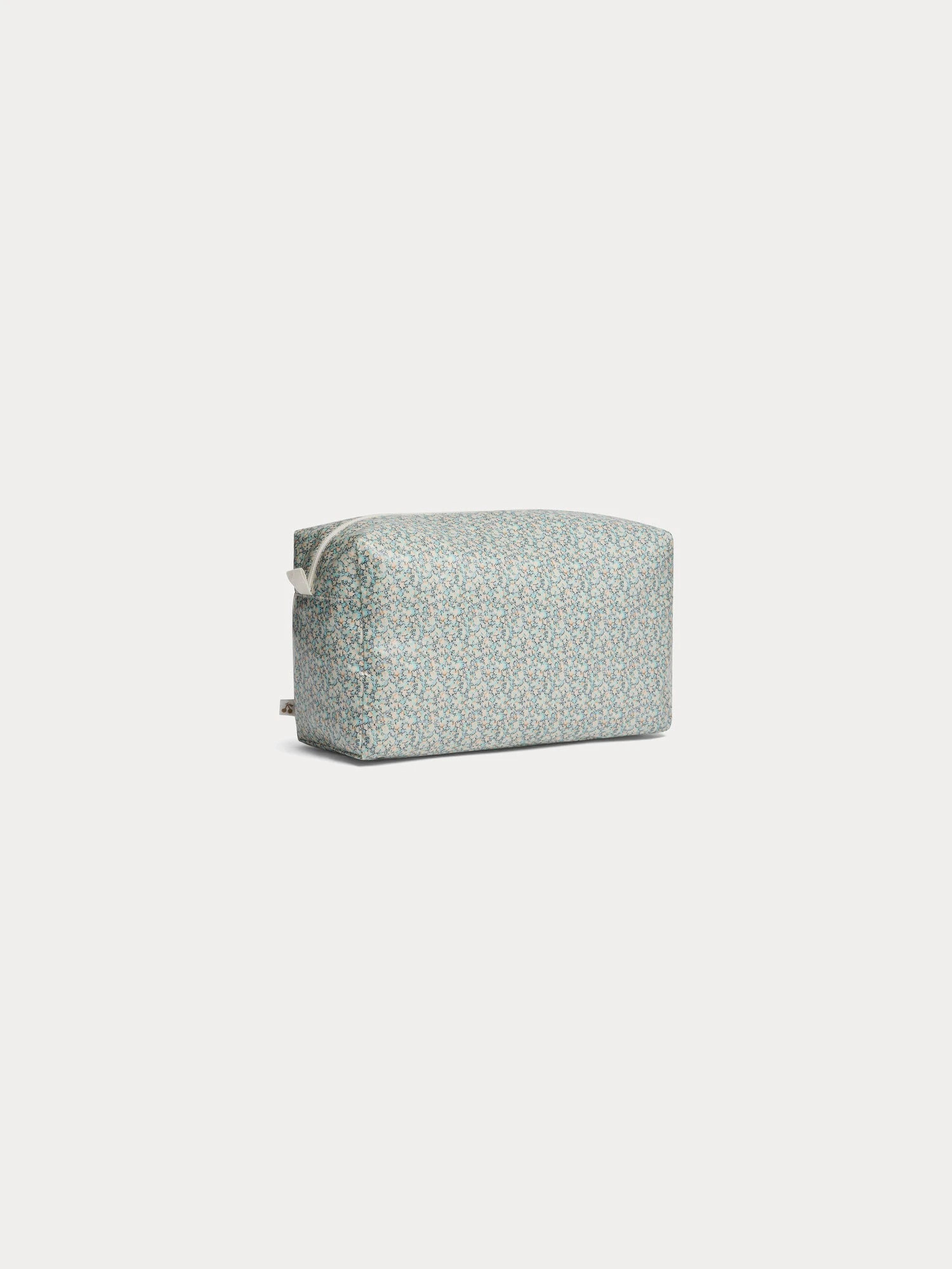 Cette trousse permet d’emporter les essentiels de bébé partout avec soi. Elle est confectionnée dans un tissu Liberty enduit au motif plein de fraîcheur.