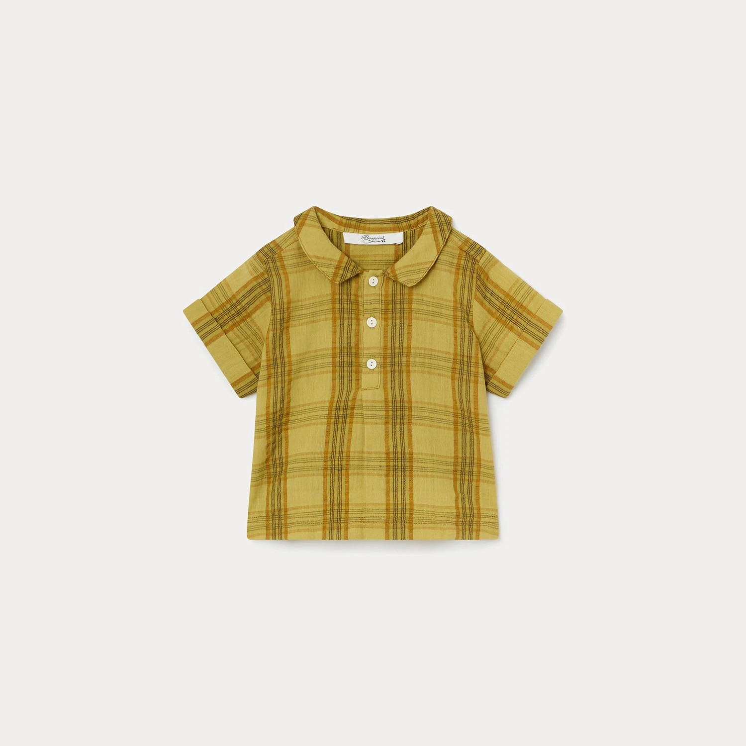 La tunique Biago pour bébé évoque le voyage avec son voile tissé et teint à carreaux authentique. Un empiècement et un pli plat au dos structurent la coupe droite.